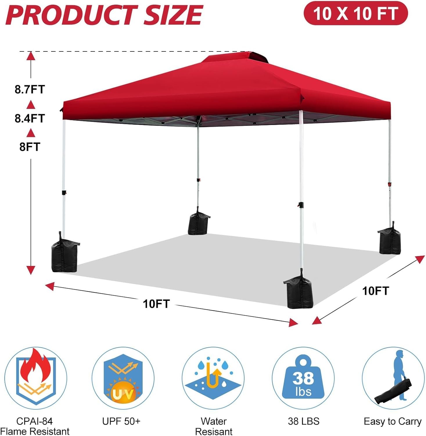 - Adjustable Height – The pop-up instant canopy has three adjustable heights, providing three gear adjustment ranges of 8 feet, 8.4 feet, and 8.7 feet. It can be adjusted through a dual structure of side infinitely adjustable sliding rails and red buckle positioning. Regardless of user identity or usage scenario, exclusive experiences can be obtained through customized spaces.