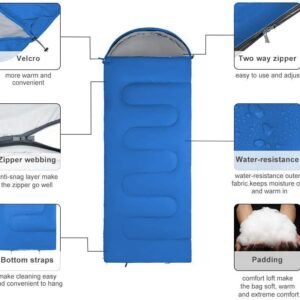 - 3 Season Sleeping Bag:Comfort temperature is 50℉-68℉(10℃-20℃).Recommended limit temperature is 41℉-77℉(5℃-25℃).Our sleeping bags are convenient to carry and storage.Perfect for emergency,camping,backpacking,travelling and hiking